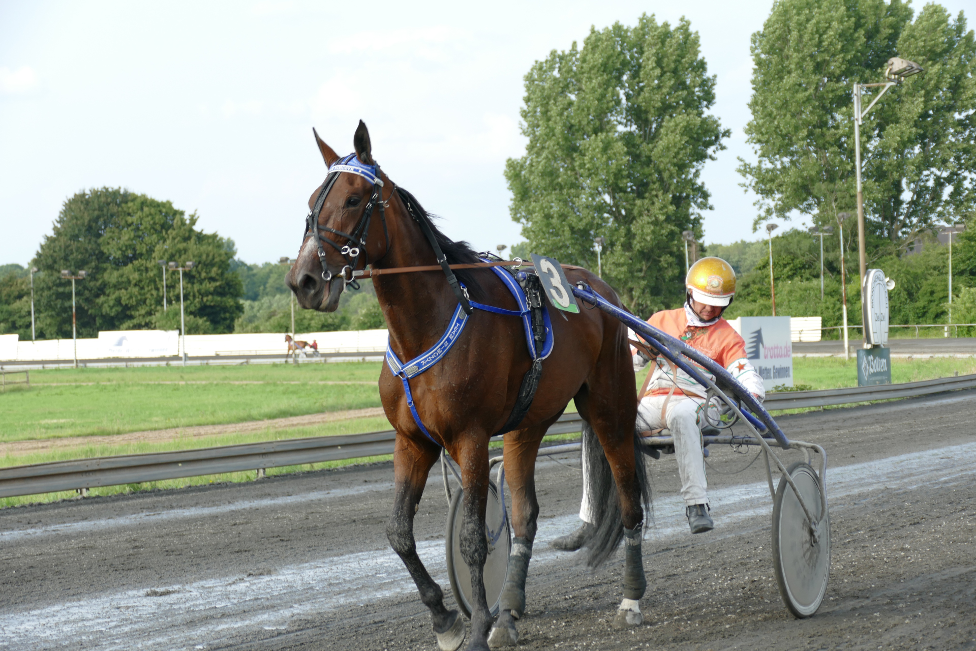 Rennen 3 (18:49 Uhr) Greenwood Farms-RennenStart zur V4-Wette - Garantieauszahlung 3.000 Euro Internationales offenes RennenAutostart Distanz: 2.100 mmit FehlstartEinlauf: 3-2-5Farbcode: gruen