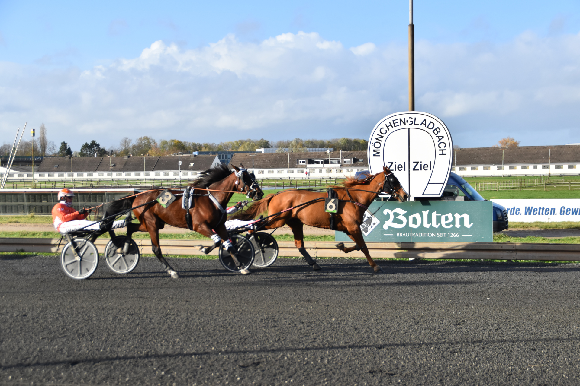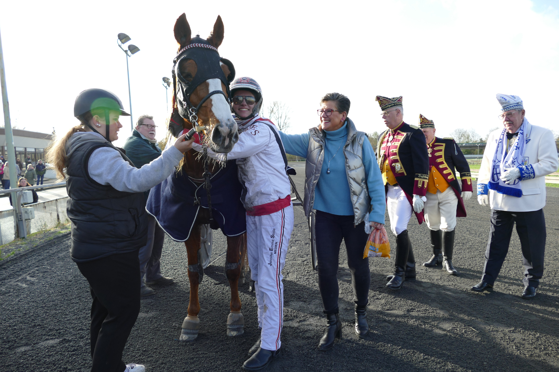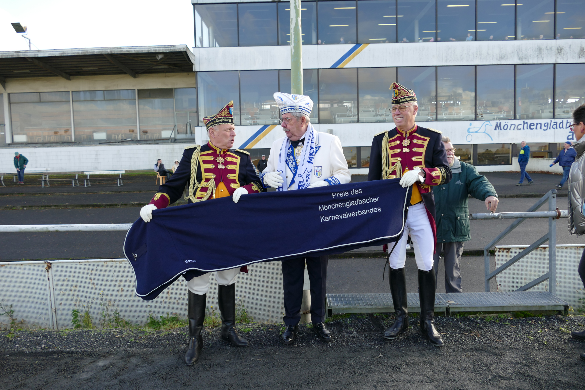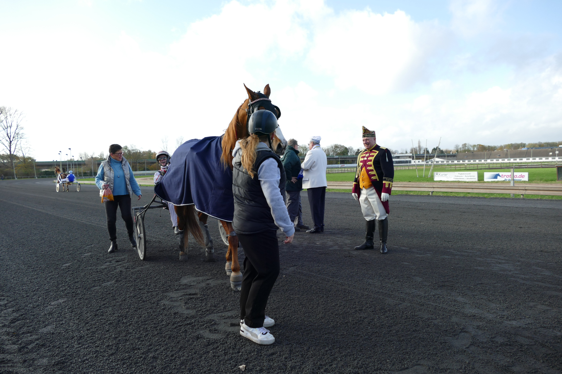 Rennen 3 (14:07 Uhr) Preis der Prinzengarde der Stadt Düsseldorf "Blau-Weiss" / Amateurfahren Start zur Tr...Internationales Amateurfahren Distanz: 2.100 mEinlauf: 6-3-4Farbcode: gruen