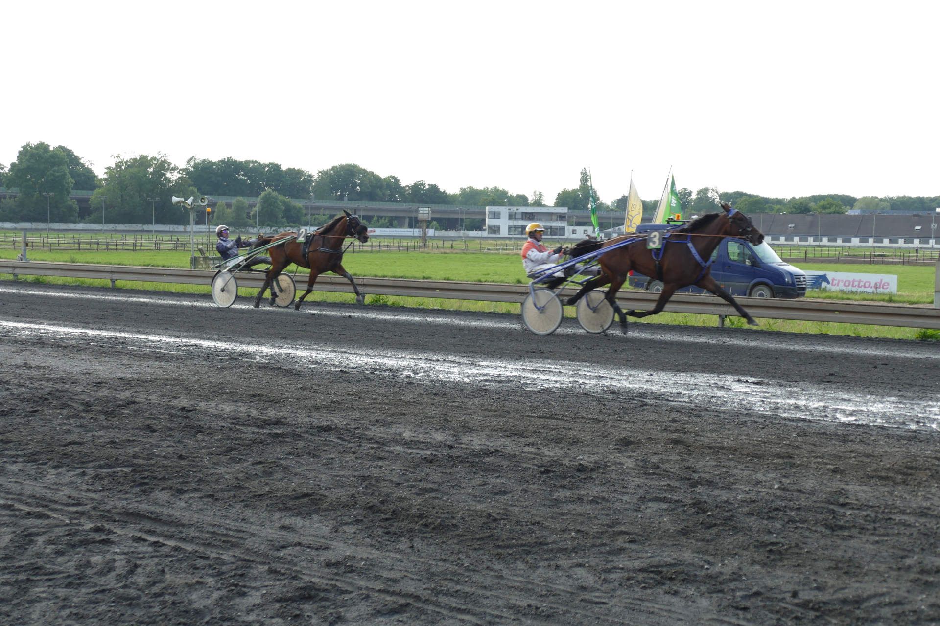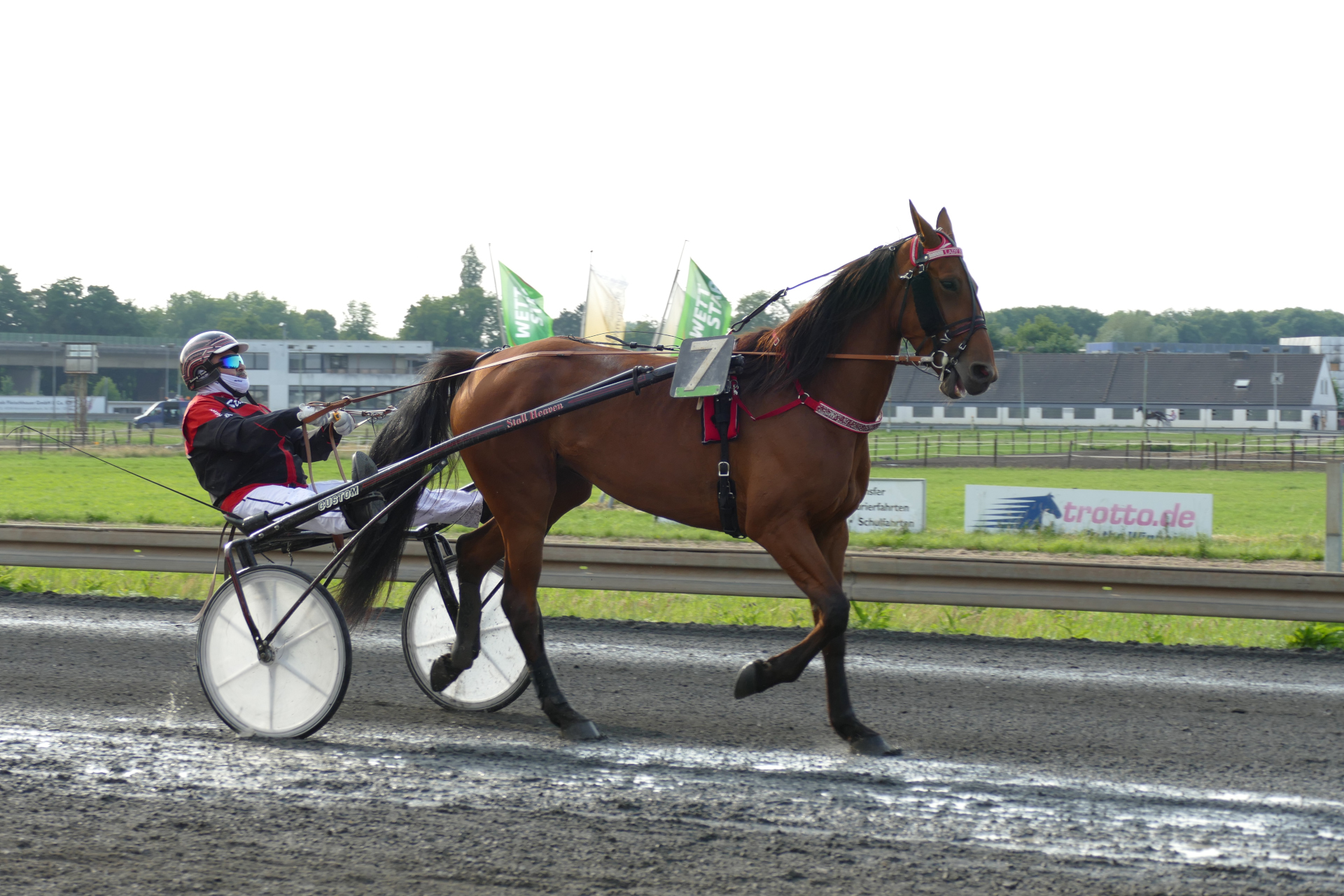 Rennen 3 (18:49 Uhr) Greenwood Farms-RennenStart zur V4-Wette - Garantieauszahlung 3.000 Euro Internationales offenes RennenAutostart Distanz: 2.100 mmit FehlstartEinlauf: 3-2-5Farbcode: gruen