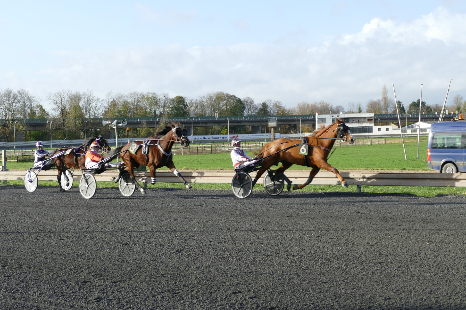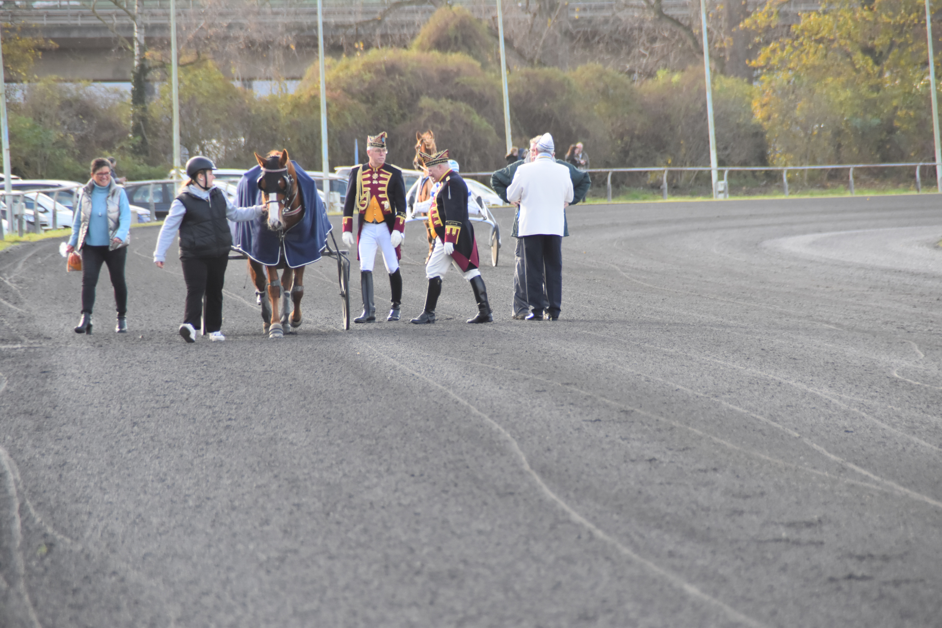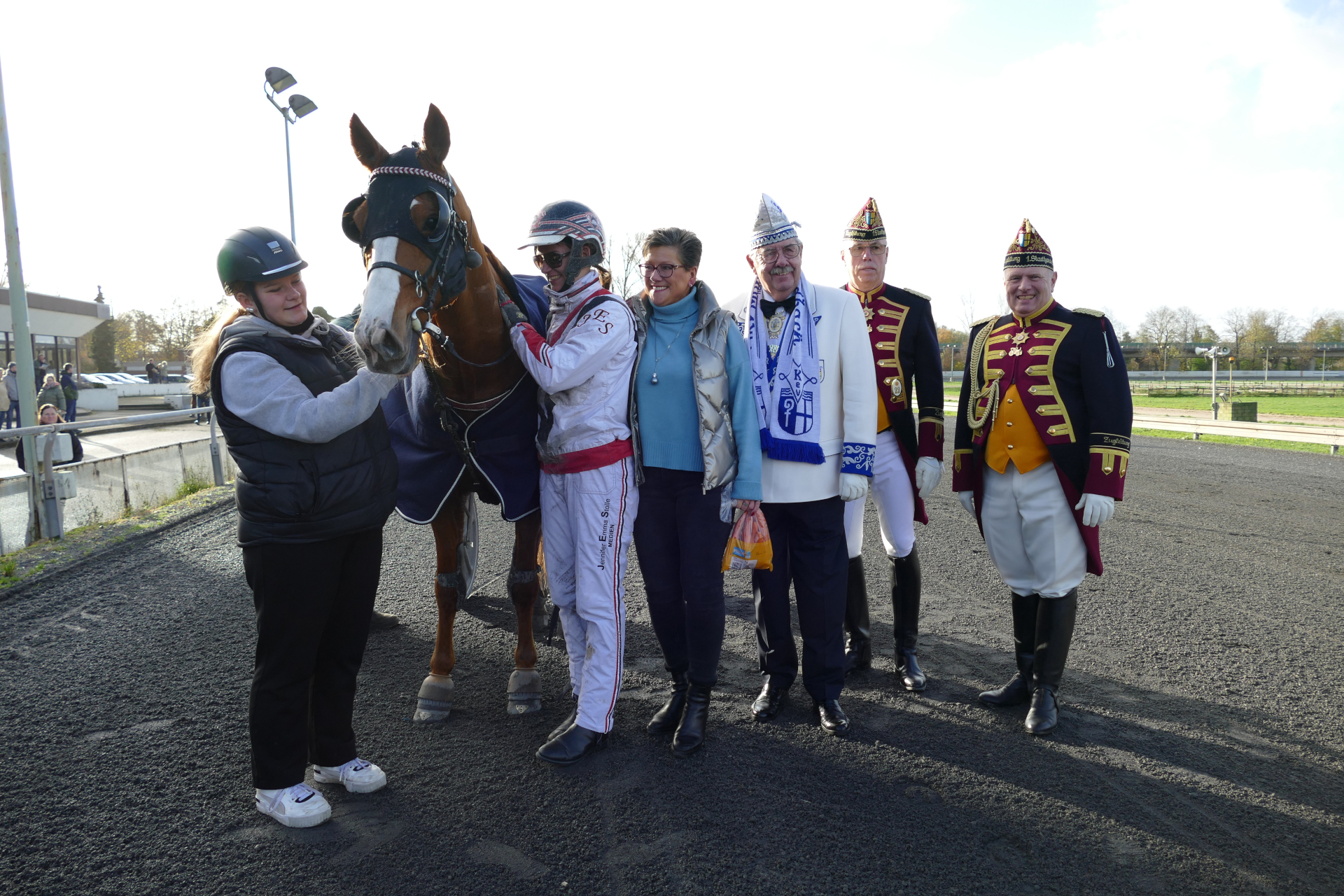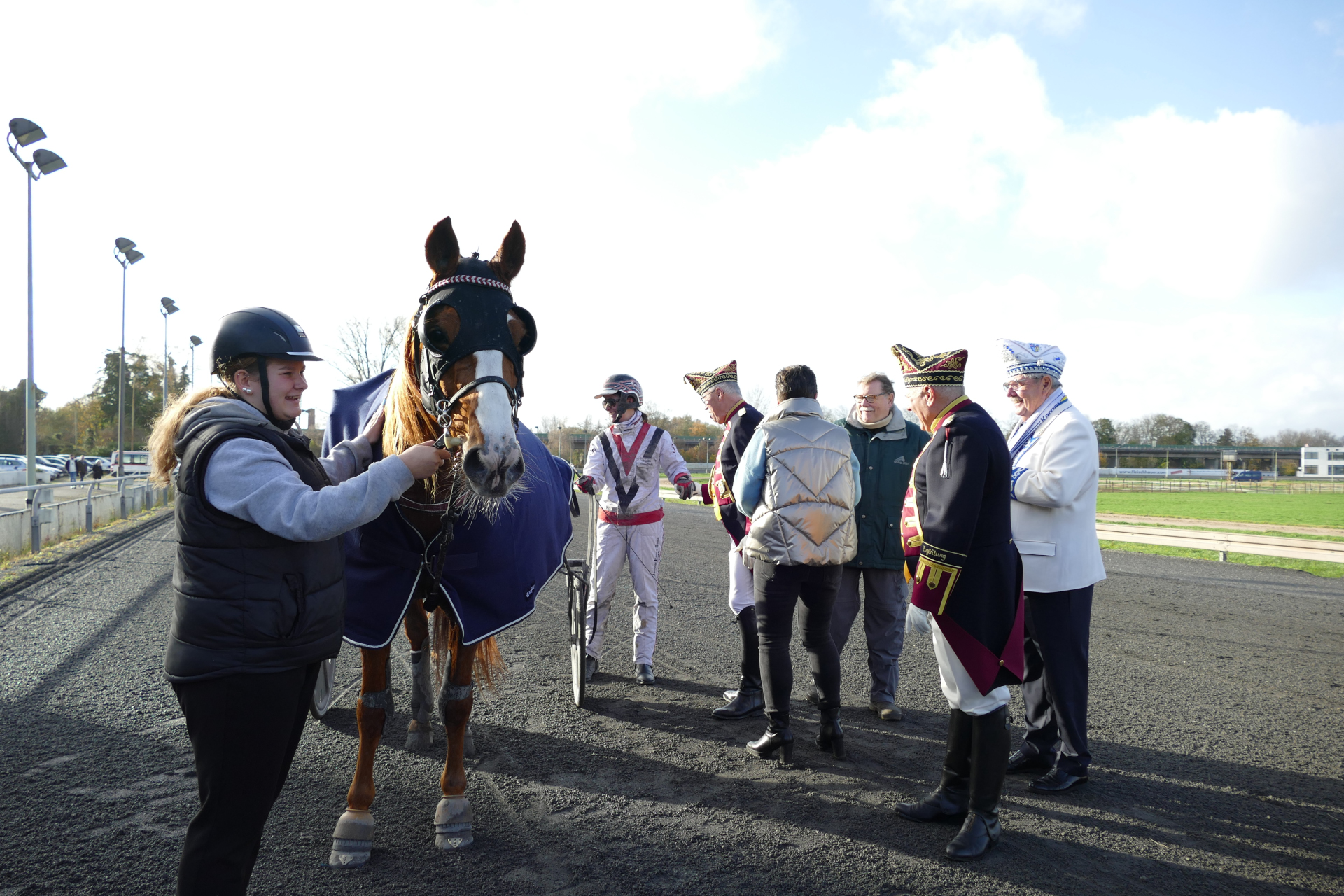 Rennen 3 (14:07 Uhr) Preis der Prinzengarde der Stadt Düsseldorf "Blau-Weiss" / Amateurfahren Start zur Tr...Internationales Amateurfahren Distanz: 2.100 mEinlauf: 6-3-4Farbcode: gruen