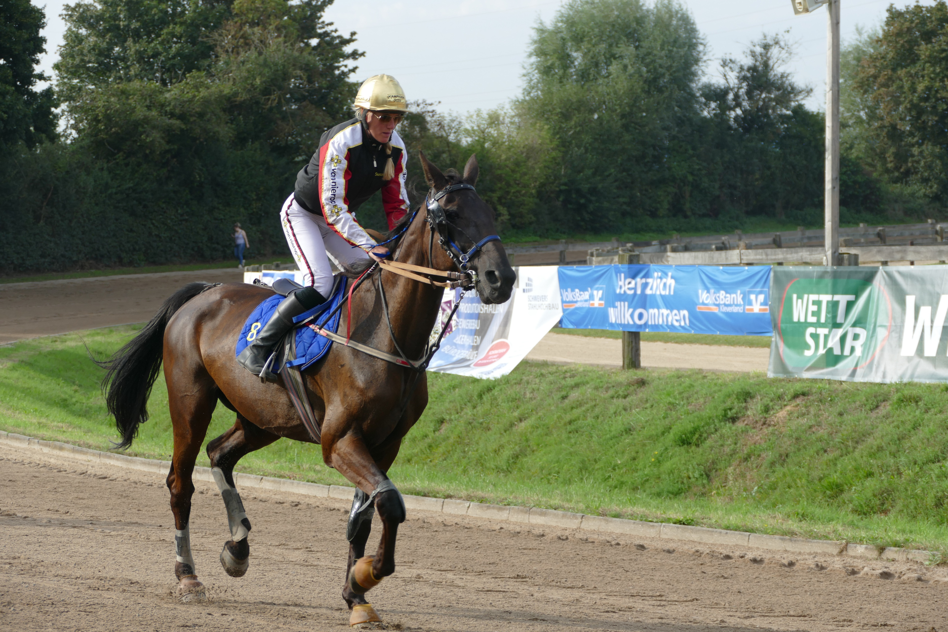 Rennen 5 (16:42 Uhr) Preis des Pflegezentrums Clivia - Trabreiten / 2. LaufInternationales Trabreiten Distanz: 2.000 mMit FehlstartEinlauf: 4-11-3
