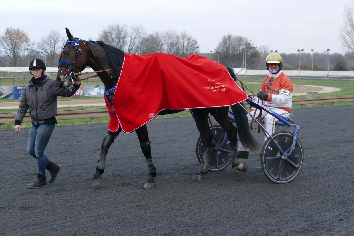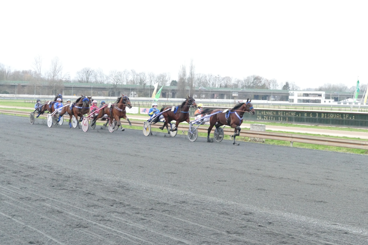 Rennen 8 (15:52 Uhr) Großer Preis des Rheinischen Karnevals für DreijährigeRennen für Inländer Einlauf: 4-6-5Farbcode: schwarz